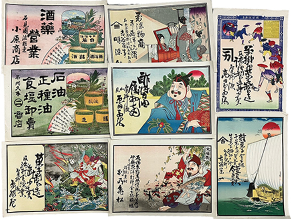 • 解説 彩色石版刷・サイズ25×36 波根東小原商店・別所亀松・久手二商店・明染館・柳瀬原田商店・高田屋・久手本町古谷・大田中町松本屋他