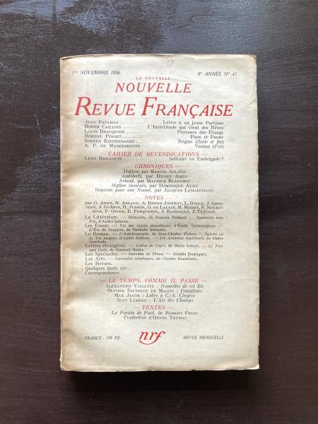 La Nouvelle Revue Française 1er Novembre 1956 4e Année No.47, NRF