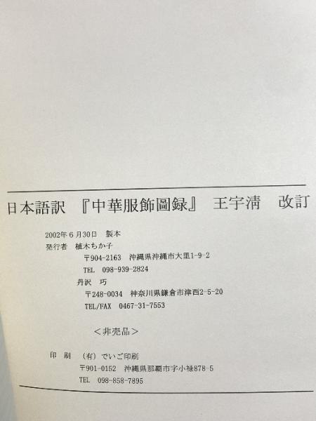 図録 日本語訳 中国服飾図録 王宇清 改正 2002 植木ちかこ