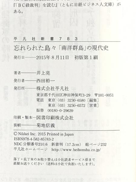 忘れられた島々「南洋群島」ノ現代史 (平凡社新書 783) 平凡社 井上 亮