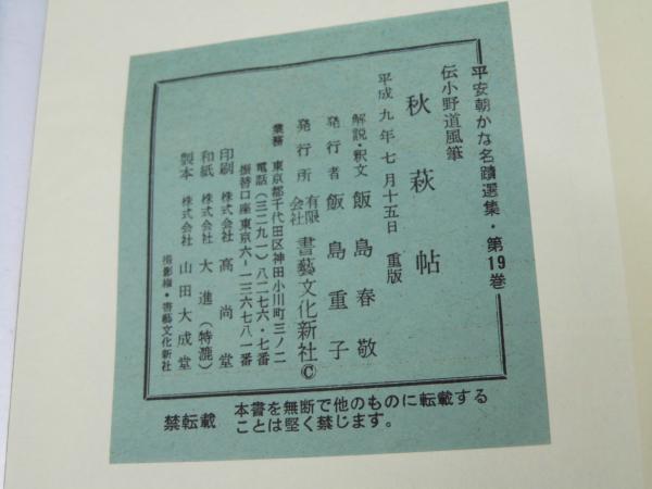 伝小野道風筆秋萩帖 <平安朝かな名蹟選集 第19巻>