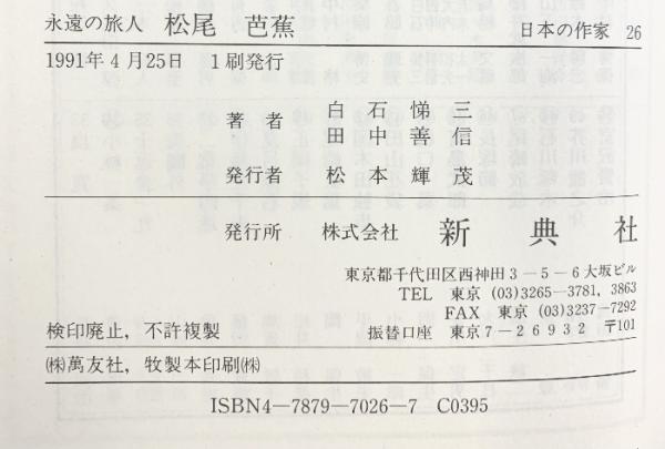 永遠の旅人 松尾芭蕉 (日本の作家26) 新典社 田中 善信