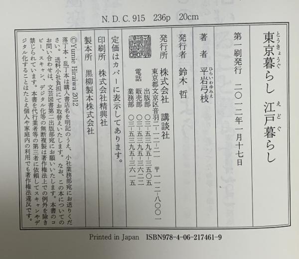 東京暮らし江戸暮らし 講談社 平岩 弓枝