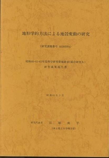 地形学的方法による地殻変動の研究 昭和60・61・62年度文部省科学研究費補助金(総合研究A)研究成果報告書 <総合研究A 60302094>