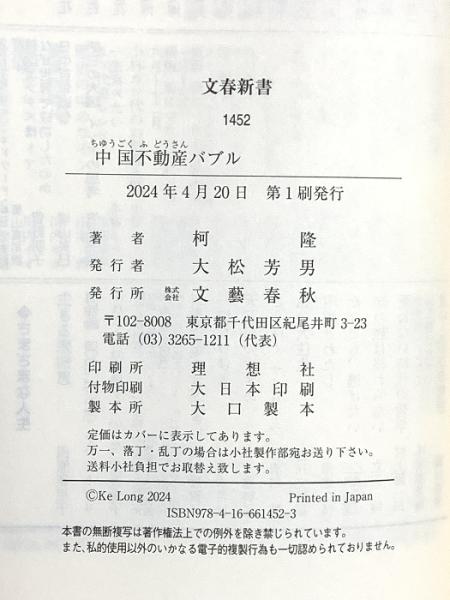 中国不動産バブル (文春新書 1452) 文藝春秋 柯隆