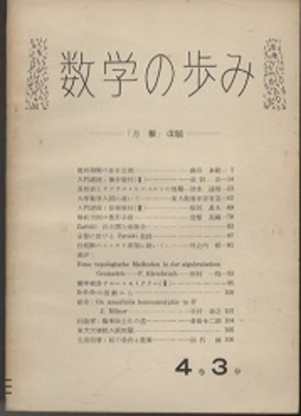 数学の歩み Vol. 4/3 概周期解の存在定理(渋谷泰隆) 討論室:数学民主化の道(倉田令二朗)ほか <数学の歩み>
