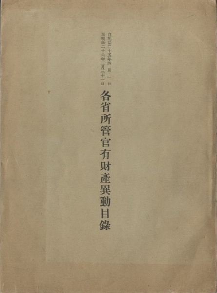 各省所管官有財産異動目録 自明治25年4月1日至明治26年3月31日