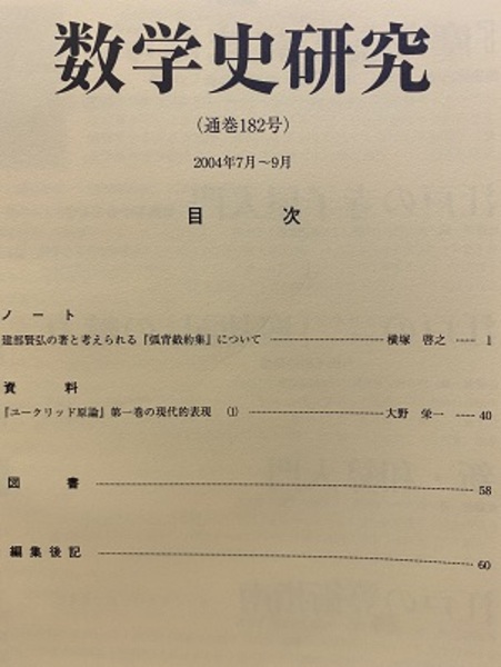 数学史研究 通巻182号 <数学史研究2004年 7月~ 9月>