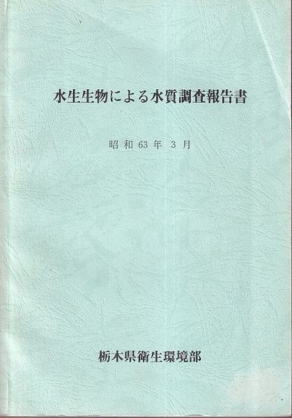 水生生物による水質調査報告書 昭和63年3月 付図:栃木県底生動物による水質階級地図 1枚