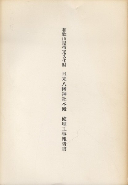 和歌山県指定文化財 旦来八幡神社本殿修理工事報告書 <和歌山県指定文化財>