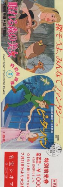 1102◆映画 特別前売券 ウォルト・ディズニー 眠れる森の美女 ピーターパン