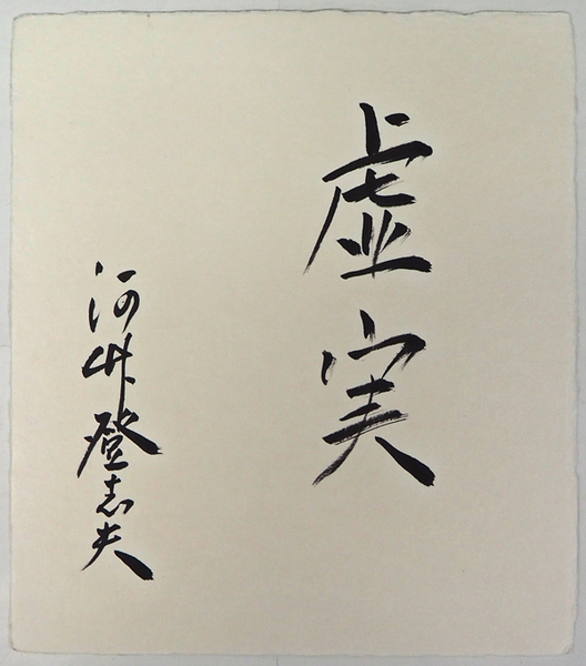 河竹登志夫色紙 『虚実』 毛筆書 和紙色紙