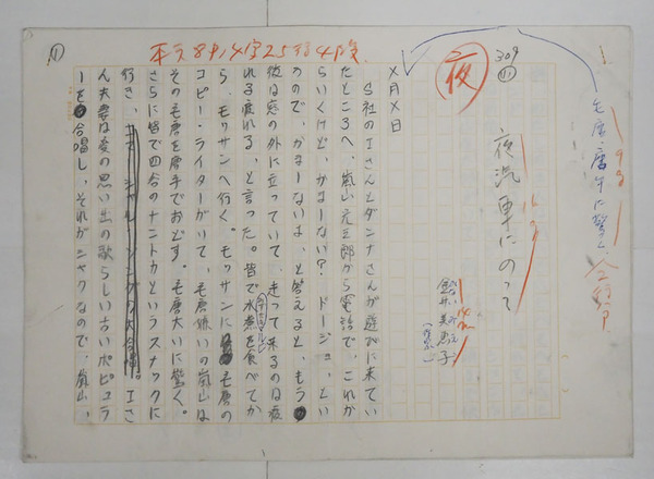 金井美恵子草稿 『夜汽車にのって』 鉛筆書四百字詰7枚完 野坂昭如、田中小実昌、嵐山光三郎など登場