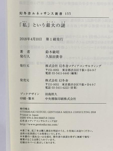 「私」という最大の謎 (幻冬舎ルネッサンス新書 す 6-1) 幻冬舎 鈴木 敏昭