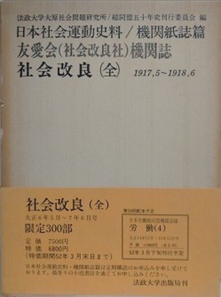 日本社会運動史料/機関紙誌篇 友愛会(社会改良社)機関誌 社会改良(全) 1917.5~1918.6