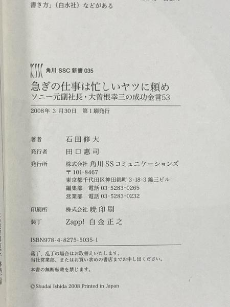 急ぎの仕事は忙しいヤツに頼め: ソニー元副社長・大曽根幸三の成功金言53 (角川SSC新書 35) KADOKAWA(角川マガジンズ) 石田 修大