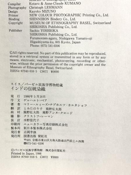 図録 インドの伝統染織 スイス バーセル民俗学博物館所蔵 1986 紫紅社
