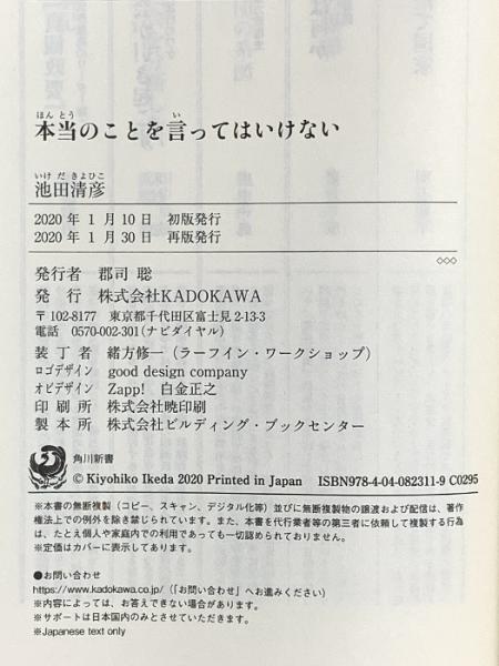 本当のことを言ってはいけない (角川新書) KADOKAWA 池田 清彦