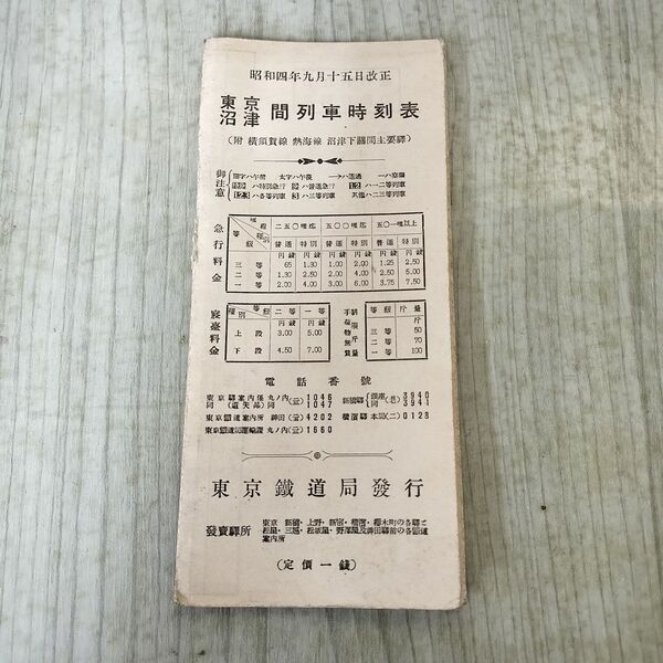 1_ 東京 沼津 間列車時刻表 昭和4年 1929年 東京鉄道局 臭いあり 020257