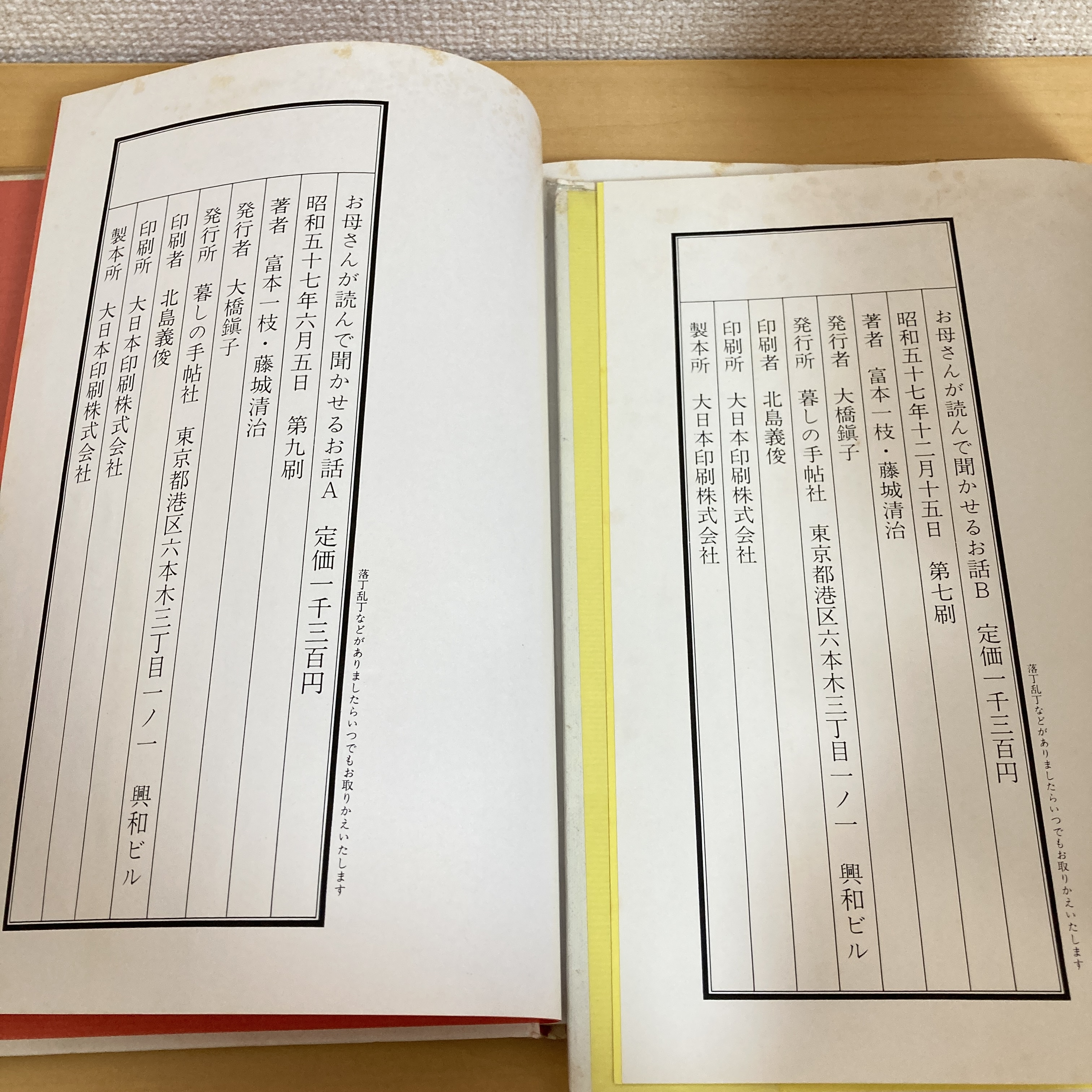 お母さんが読んで聞かせるお話 A・B 2冊揃