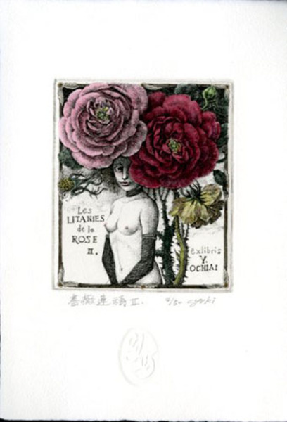 林由紀子蔵書票5 「薔薇連祷Ⅱ」