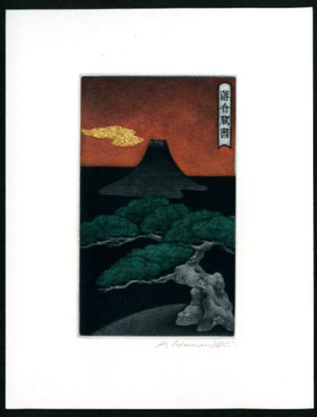 • 解説 カラーメゾチント/金箔 サイン 12×7 18.2×14 銅版画