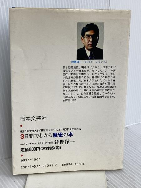 3日間でわかる麻雀の本: 第1日目で覚える・第2日目で打てる・第3日目で勝てる (ai books) 日本文芸社 狩野 洋一