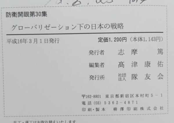 グローバリゼーション下の日本の戦略 : 第30回防衛セミナー講演集 <防衛開眼 「日本の安全と平和を考える」シリーズ 第30集>