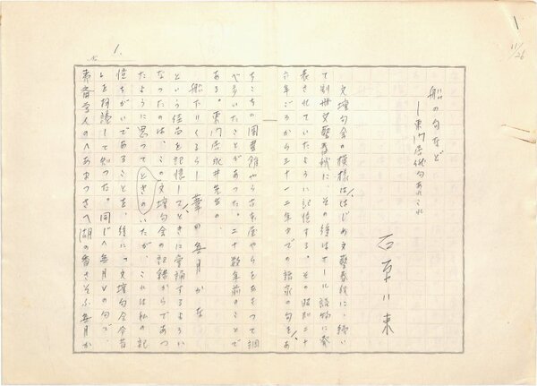 • 解説 『船の句など』―東門居俳句あれこれ 鉛筆書 400字詰原稿用紙5枚完 「永井龍男全集11巻月報」(講談社・昭57)掲載。(種別)回想 #八木書店近代自筆物/1.草稿類 #95号近代文学特輯 95605689 ※自筆物につきましては、毎月25日前後に新蒐品を追加しております。PDF形式で御覧になりたい方は https://company.books-yagi.co.jp/archives/news/10928 を参照ください。