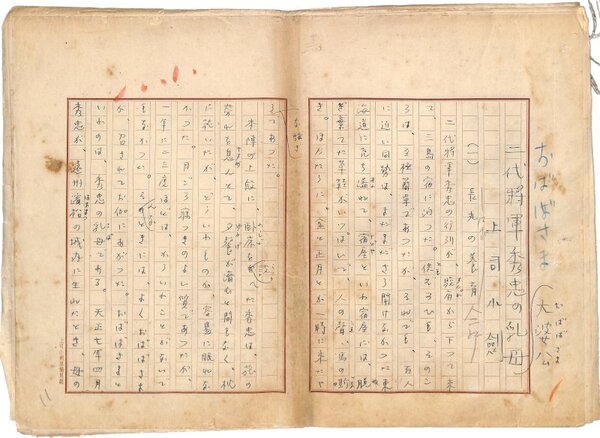 • 解説 『二代将軍秀忠の乳母』 ペン書 400字詰自家用箋41枚完 三島の宿で起こった魚泥棒の顛末。(種別)小説 #八木書店近代自筆物/1.草稿類 #95号近代文学特輯 95401140 ※自筆物につきましては、毎月25日前後に新蒐品を追加しております。PDF形式で御覧になりたい方は https://company.books-yagi.co.jp/archives/news/10928 を参照ください。
