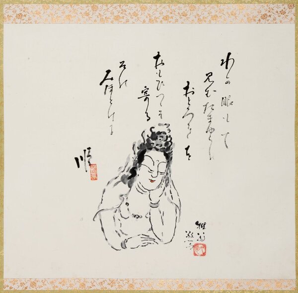 • 解説 44×51 「夢殿秘佛三首」より 翁久允画 わが眼もて見むたまゆらのおどろきをおもひつゝぞ寄るそのみほとけに 順 #八木書店近代自筆物/4.書画類 #95号近代文学特輯 95008158 ※自筆物につきましては、毎月25日前後に新蒐品を追加しております。PDF形式で御覧になりたい方は https://company.books-yagi.co.jp/archives/news/10928 を参照ください。
