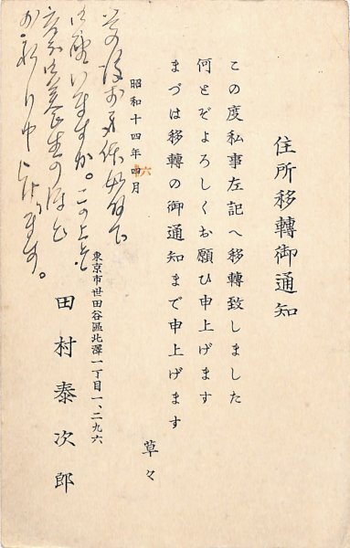 田村泰次郎葉書