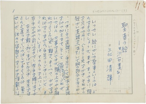 • 解説 『聖者の絵 ―「沙石集」―』 ペン書 400字詰原稿用紙9枚完 単行本「古典と現代」(未来社・昭42)、同名評論中の「六」の部分。シリーズ名として「生きた古典へのアプローチVIII」と記され、雑誌掲載用の組版指定がある。(種別)評論 #八木書店近代自筆物/1.草稿類 #95号近代文学特輯 95902408 ※自筆物につきましては、毎月25日前後に新蒐品を追加しております。PDF形式で御覧になりたい方は https://company.books-yagi.co.jp/archives/news/10928 を参照ください。
