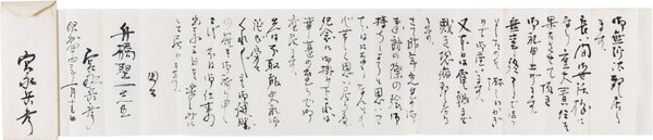• 解説 舟橋聖一宛 毛筆 巻紙31行 封筒付 昭44・1・13(本文) 置手紙か 任期満了、あるいは仕事が一区切りついたか。「長い間御世話様になり重大責任を果たさせて頂き御礼申し上げます。無事終了でほつとしたのに淋しいかぎりで御座います」。 #八木書店近代自筆物/2.書簡類 #95号近代文学特輯 95507299 ※自筆物につきましては、毎月25日前後に新蒐品を追加しております。PDF形式で御覧になりたい方は https://company.books-yagi.co.jp/archives/news/10928 を参照ください。