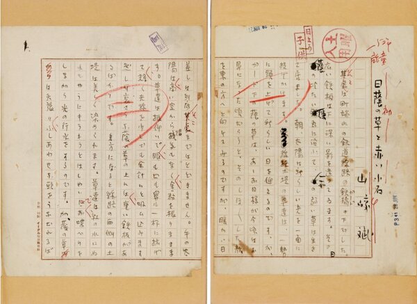 • 解説 『日蔭の草と赤い小石』 ペン書 400字詰原稿用紙12枚完 半裁 貼込 大正期の新聞、雑誌に掲載された童話。紙のファイルに張り込まれ、表面にビニールをかけてある。文末の日付は「一四、十、九」。(種別)児童文学 #八木書店近代自筆物/1.草稿類 #95号近代文学特輯 95607377 ※自筆物につきましては、毎月25日前後に新蒐品を追加しております。PDF形式で御覧になりたい方は https://company.books-yagi.co.jp/archives/news/10928 を参照ください。
