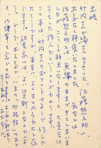 • 解説 竹内多三郎宛 #八木書店近代自筆物/3.葉書類 #八木古書2025年12月新蒐 #葉書番外 #廉価 ※自筆物につきましては、毎月25日前後に新蒐品を追加しております。h2951