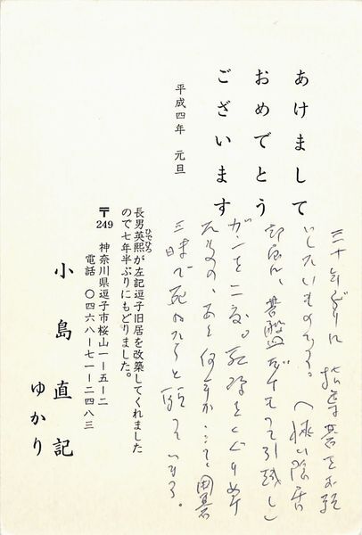 小島直記葉書(印刷・ペン書/年賀)