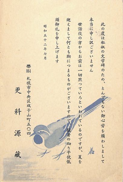 更科源蔵葉書(印刷/挨拶)