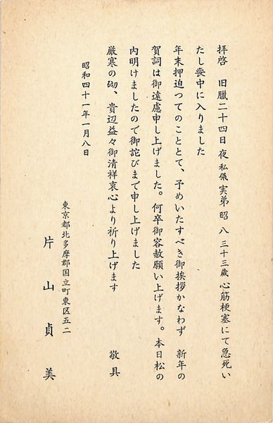 片山貞美葉書(印刷/喪中)
