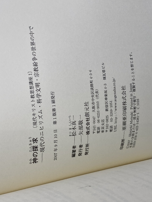 神の探求: 現代のニヒリズム・科学文明・宗教紛争の世界の中で (現代キリスト教思想講座 1) 創元社