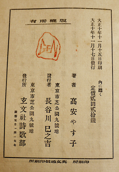 第一歌集 内に聴く 高安やす子著 与謝野寛序文 初版箱 玄文社詩歌部発行 大正10年