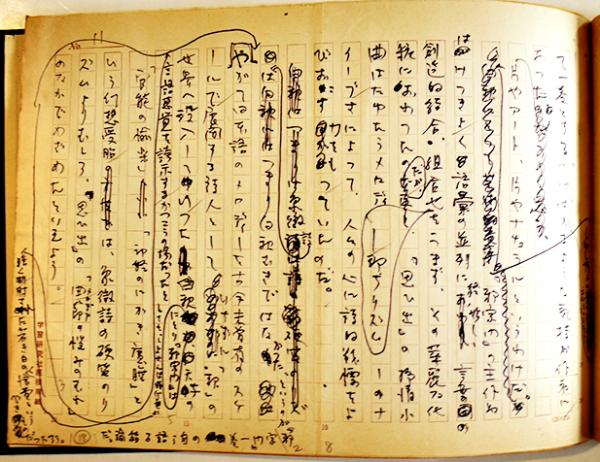 山本太郎草稿「詩集『邪宗門』とその化粧」ペン書学研原稿用紙400字詰11枚完 和綴じ装本クロス帙入