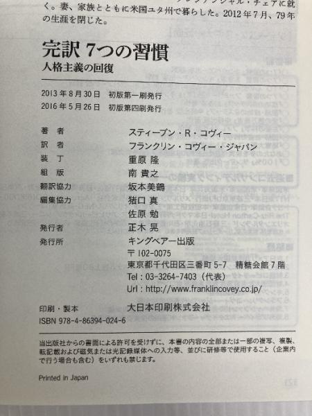 完訳 7つの習慣 人格主義の回復 FCE(キングベアー出版) スティーブン・R.コヴィー