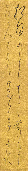 • 解説 金紙 毛筆36.3×6cm(短冊サイズ)1枚裏面に書込ミ  「松風にしくるゝ寺の前とほりとほる人ハあれと日々暮のかけ」