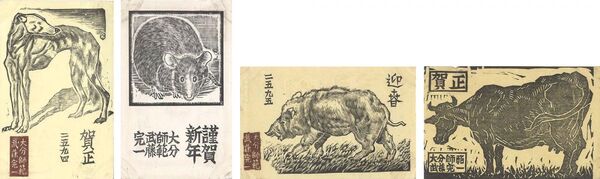 木版賀状 Greeting Cards from Muto Kanichi to Kitazawa Shuji