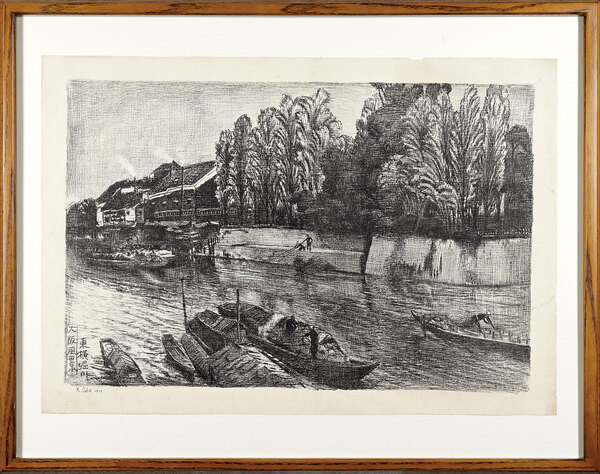 • 解説 石版28.5×43.5cm(イメージサイズ) / 44.6×56.8cm(額サイズ)ed.50額付1面Frame端部少傷ミ ※大阪風景:石版画家・織田一麿の代表的な版画集。東京風景と並び20図を制作。大阪特有の美観を描写し後年に伝えるために、より実感的に描かれている。