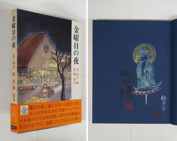 金曜日の夜 毛筆署名落款入 初函帯 関玩亭の水彩画署名落款入