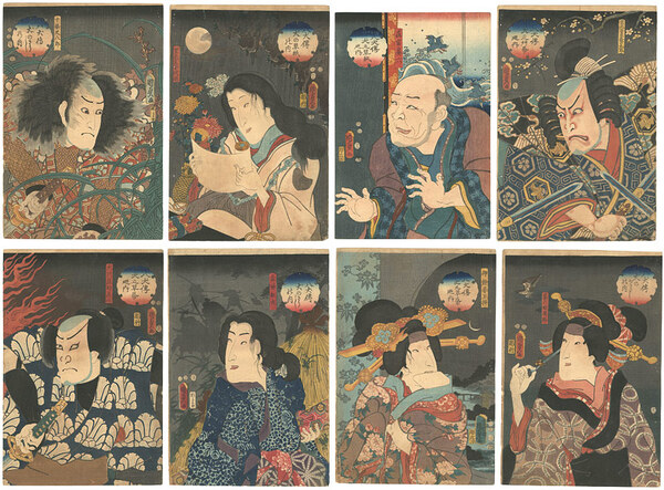 • 解説 Woodblock Print大判(各約37.7×25.3cm)8枚摺良 トリミング 綴ジ穴 少ヤケ 少汚レ