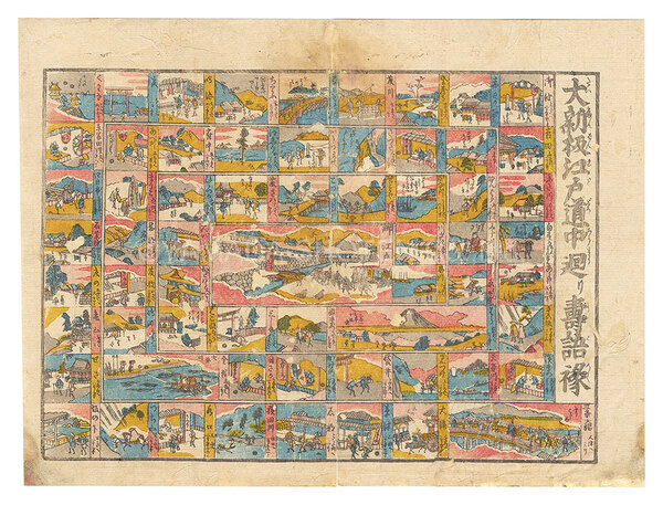 大新板江戸道中廻り寿語禄 Newly Published: Edo 'On the Road' Roundabout Sugoroku