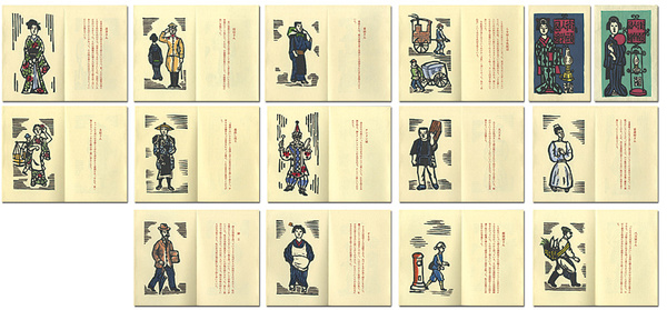• 解説 木版 手彩(小杉ヤエ) 全13図 限100 袋付(少シワ) 18.5×12cm